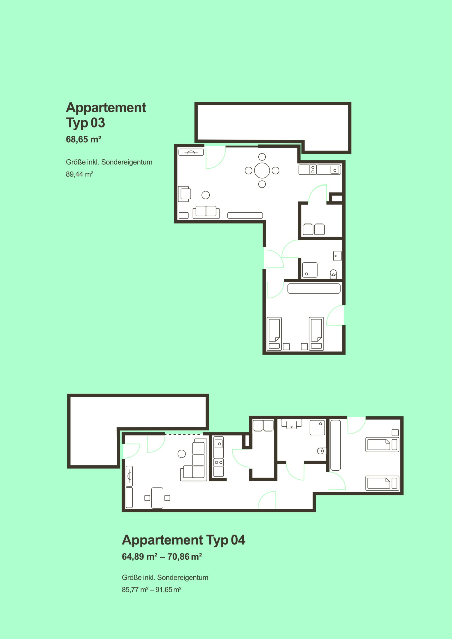 Gesamtflächen: 59,38 m² - 91,65 m²