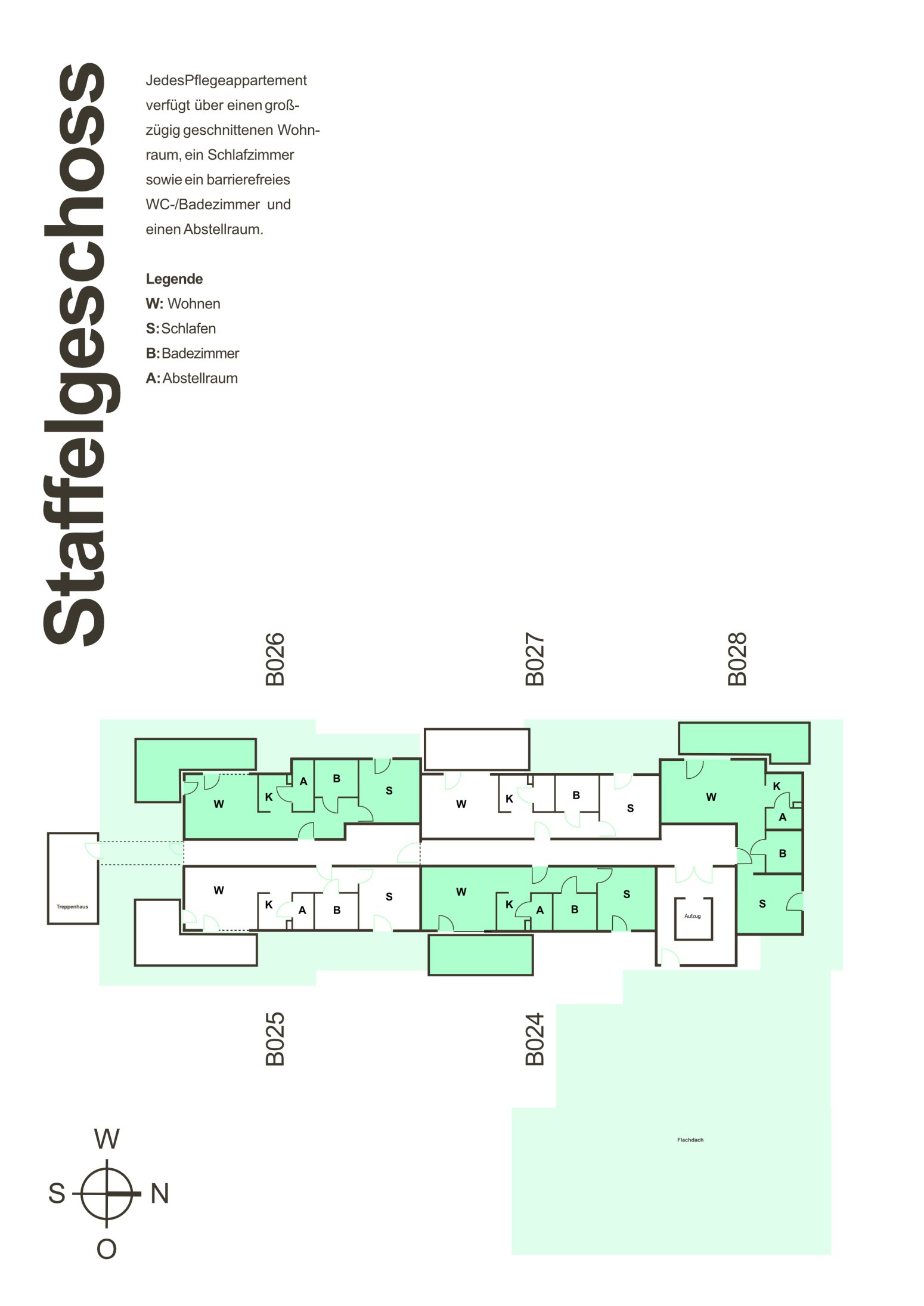 Das Wohngebäude für betreutes Wohnen mit Service erfüllt den KfW-40-NH-Standard und setzt Maßstäbe in Sachen Nachhaltigkeit. Naturnahe Flachdachbegrünung, eine energieeffiziente Gebäudehülle und moderne Haustechnik reduzieren den Energieverbrauch und den CO2-Fußabdruck deutlich. Insgesamt entsteht hier ein Ort, an dem Lebensqualität und Nachhaltigkeit Hand in Hand gehen.